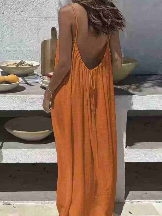 欧美跨境亚马逊吊带露背宽松长款连衣裙,数量 434 条,码数 S-XL。 整款两...