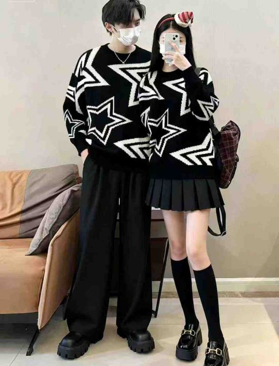 秋冬新款男士宽松慵懒风提花大版北极绒套头毛衣,独立...