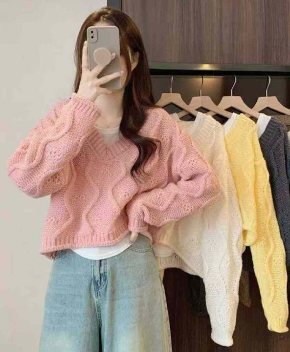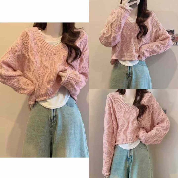 别致镂空短款早春秋宽松针织毛衣上衣,独立包装,均码,260件,清6.5,分➕1