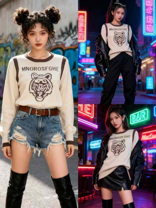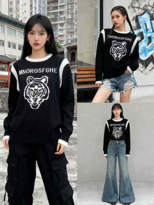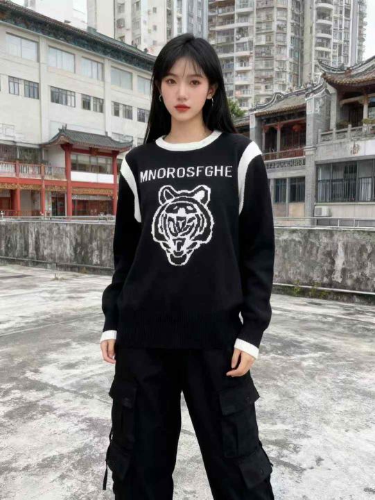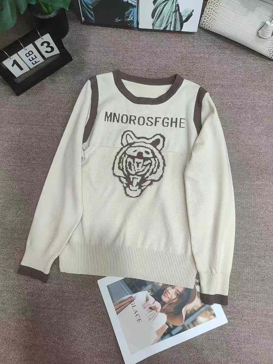 潮牌新款韩版高级感显瘦百搭虎头宽松套头毛衣,独立包装,均码,695件,清7.8,分➕1