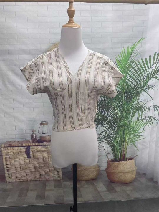 [得意]2.8元全清,设计感条纹亚麻透气宽松显瘦短袖披肩上衣,独立包装,S-XL,108件左右