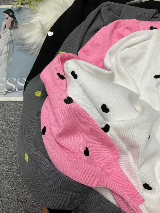 秋冬新款法式气质方领宽松爱心波点提花可爱泡泡袖套头毛衣,独立包装,均码...