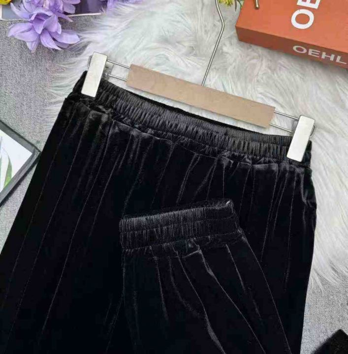 全清价7.9元金丝绒秋冬新款垂坠感高腰显瘦百搭宽松高...