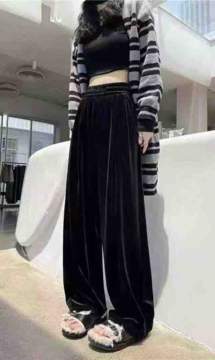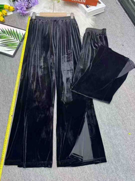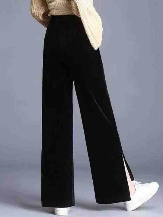金丝绒秋冬新款垂坠感高腰显瘦百搭宽松高腰休闲开叉阔腿裤,独立包装,弹力大,码数S-4XL(1-7),数量311条,(货号0914#48)