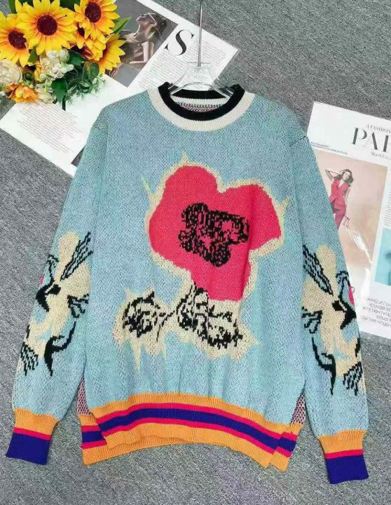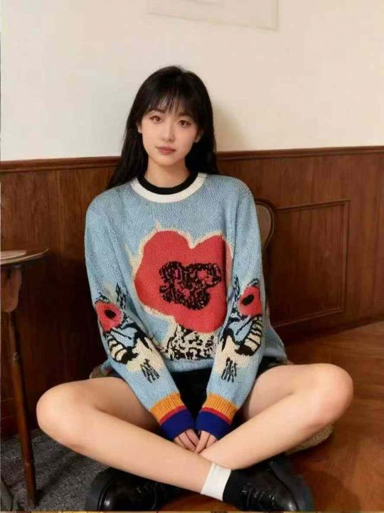 秋冬新款法式高级感复古宽松大码慵懒风提花包芯纱套头...