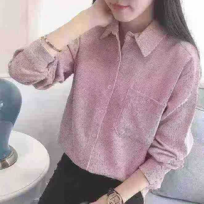 韩版宽松灯芯绒衬衫女2025新款长袖百搭口袋外套潮,独...