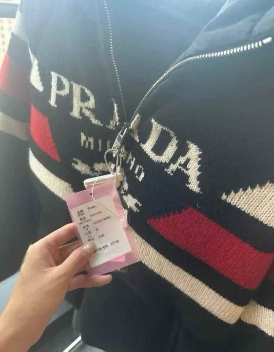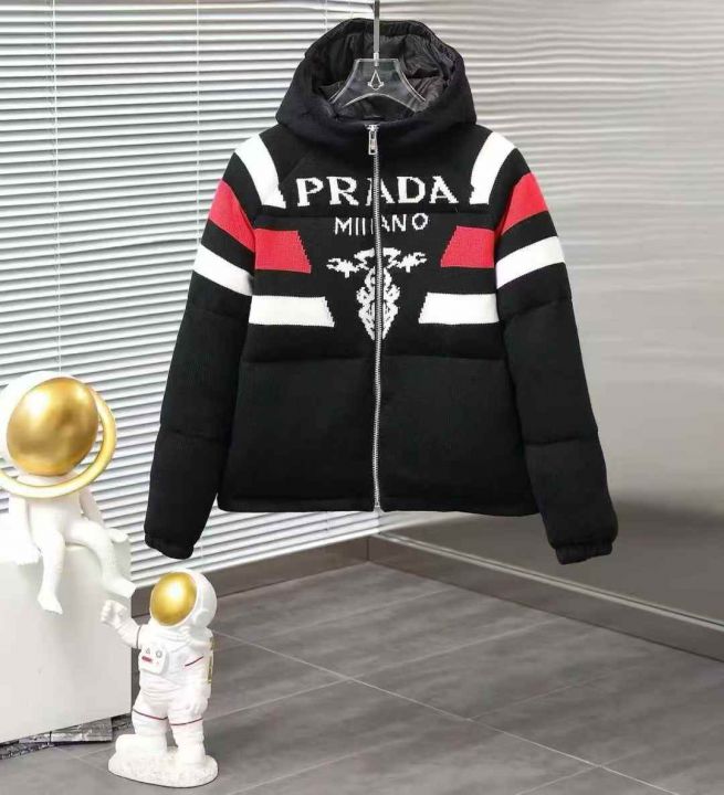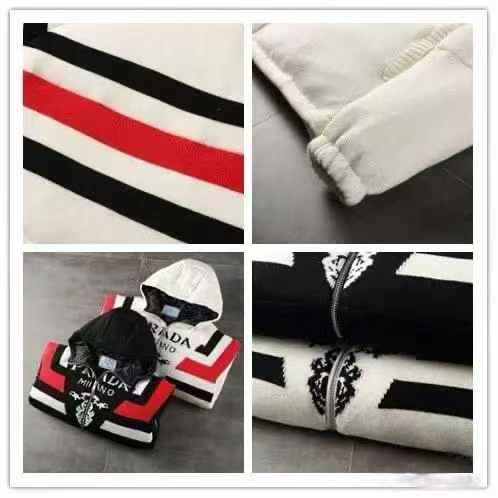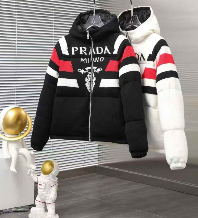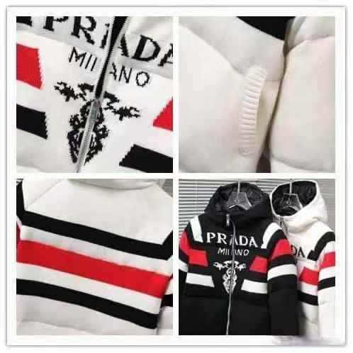 PRADA Logo提花条纹针织毛衣连帽羽绒服外套 男女同款 白色 黑色 400多件 清货!