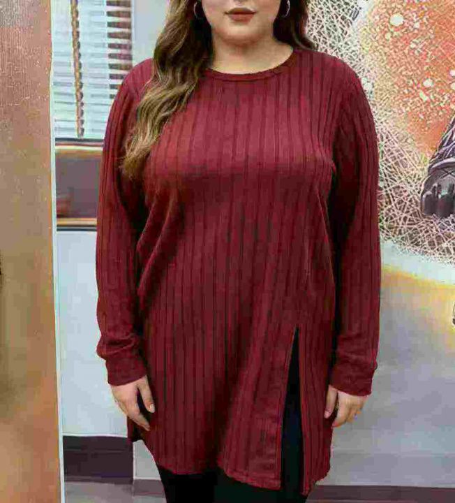 外贸大码女装上衣,大板胖妹妹时尚圆领下摆开叉休闲上衣,独立包装1到4XL码...