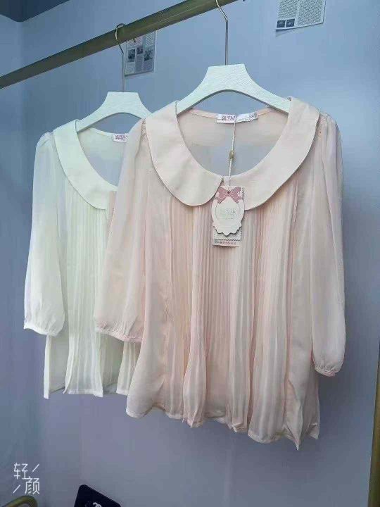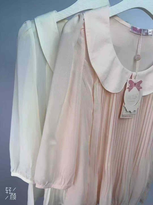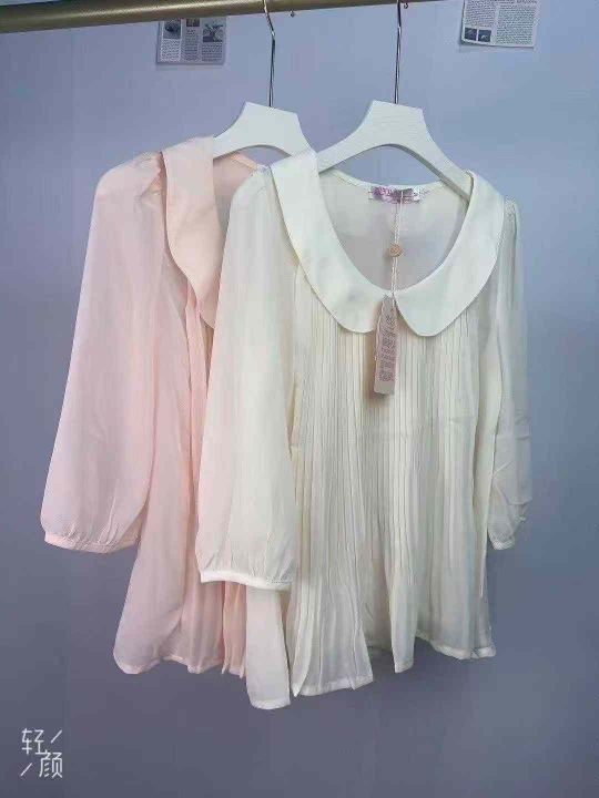 韩版娃娃领雪纺衫宽松七分袖上衣,独立包装,全部有吊牌,码数S-M-L ,两个颜色135件.全清5.8
