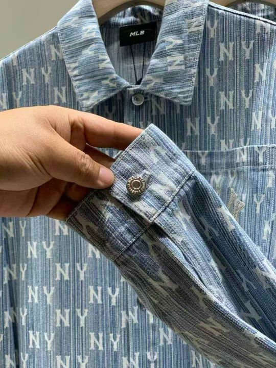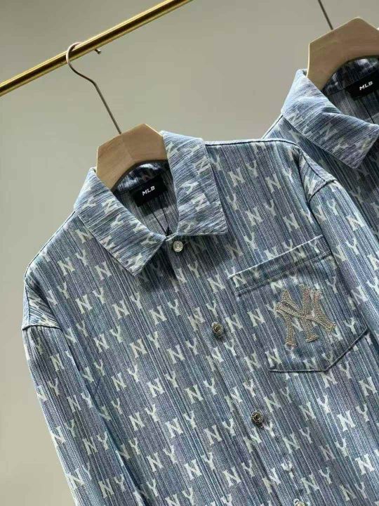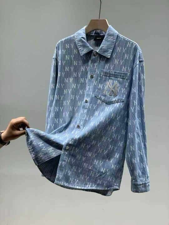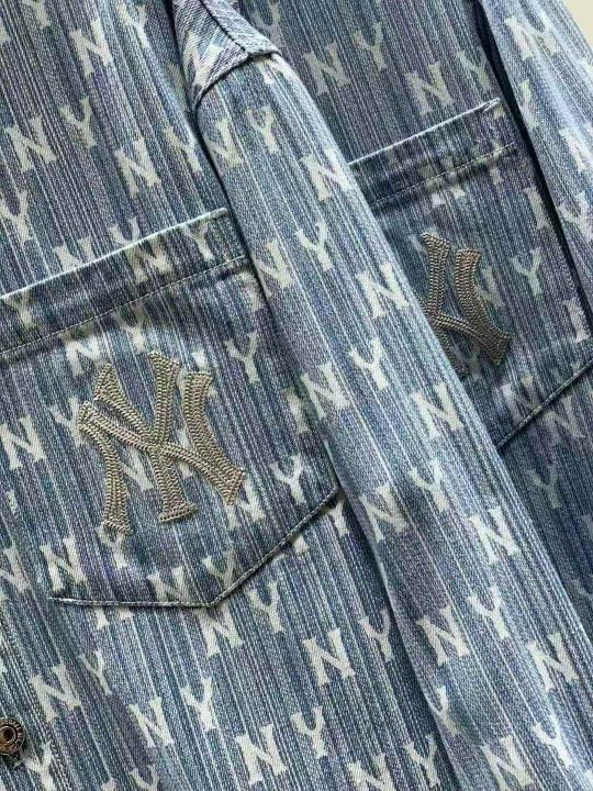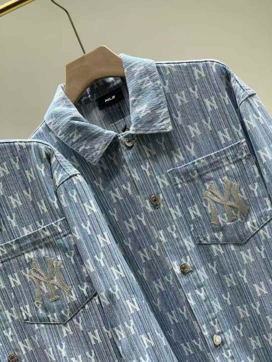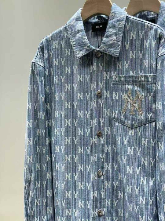 韩国MLB专柜正品25春季款老花男女水洗做旧牛仔衬衫外套3ADRM1051蓝色 尺码:s~xxl 2000件清货 配清 100起配