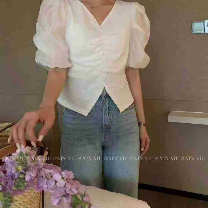上新全清:10.8一件韩系V领设计感泡泡袖百搭上衣,[爱...