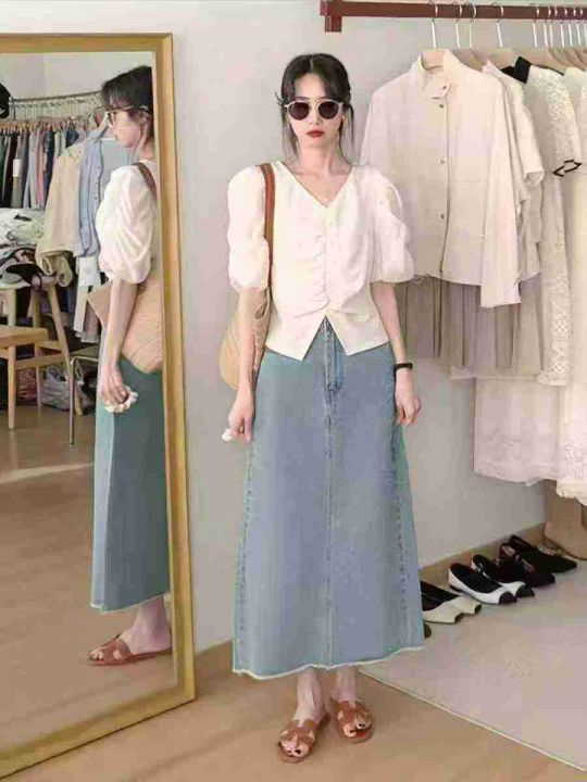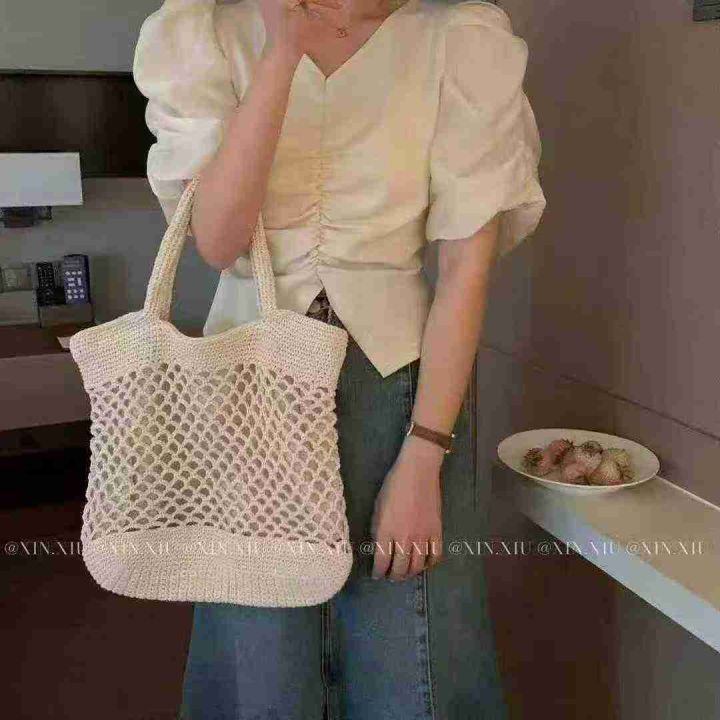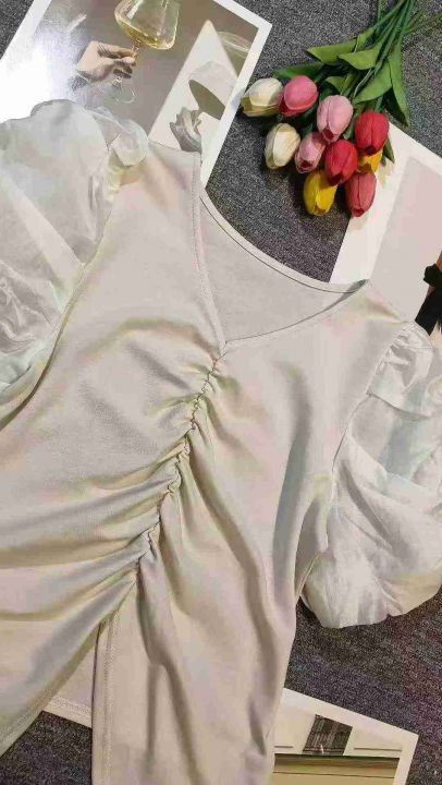 韩系V领设计感泡泡袖百搭上衣,[爱心]55件左右,杏色,款号#9468,码数M-XL,穿80-130斤,万佳档口货,原包装️无瑕疵,[666]实体店品质
