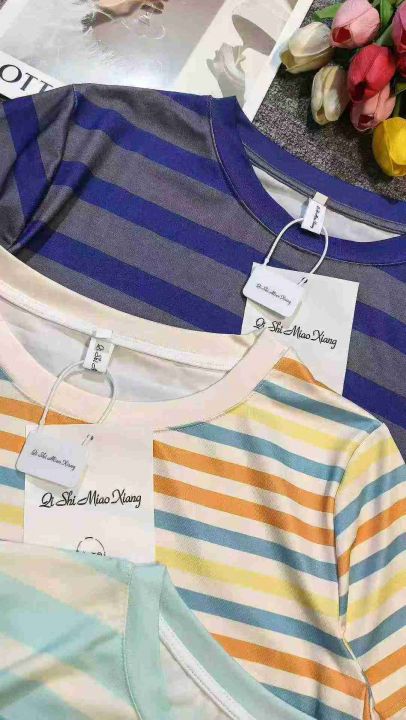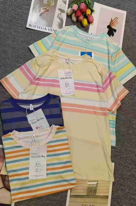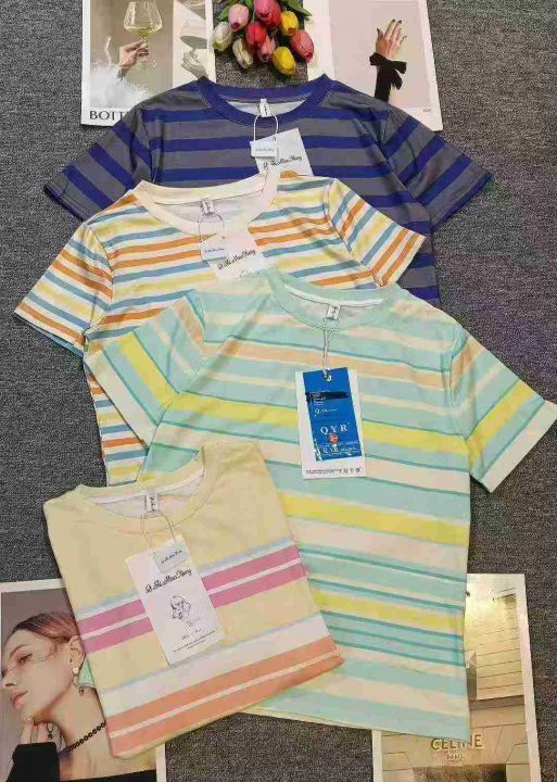 简约通勤ins设计感条纹圆领短袖,[爱心]260件左右,四个款,黄蓝条纹为主,码数S-2XL,穿80-140斤,[666]工厂原包装瑕疵,分货加一