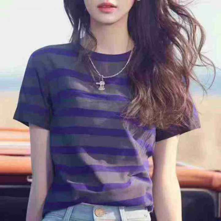 上新全清:5.8一件简约通勤ins设计感条纹圆领短袖,[...