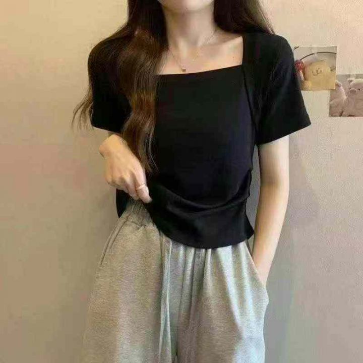 全清4.8元,数量800件,纯欲露背短袖T恤方领修身露锁骨显瘦,黑色为主,其他色一共才30左右,正肩甜辣辣妹短款上衣美式ins,独立包装,码数M-2XL,分货➕0.5
