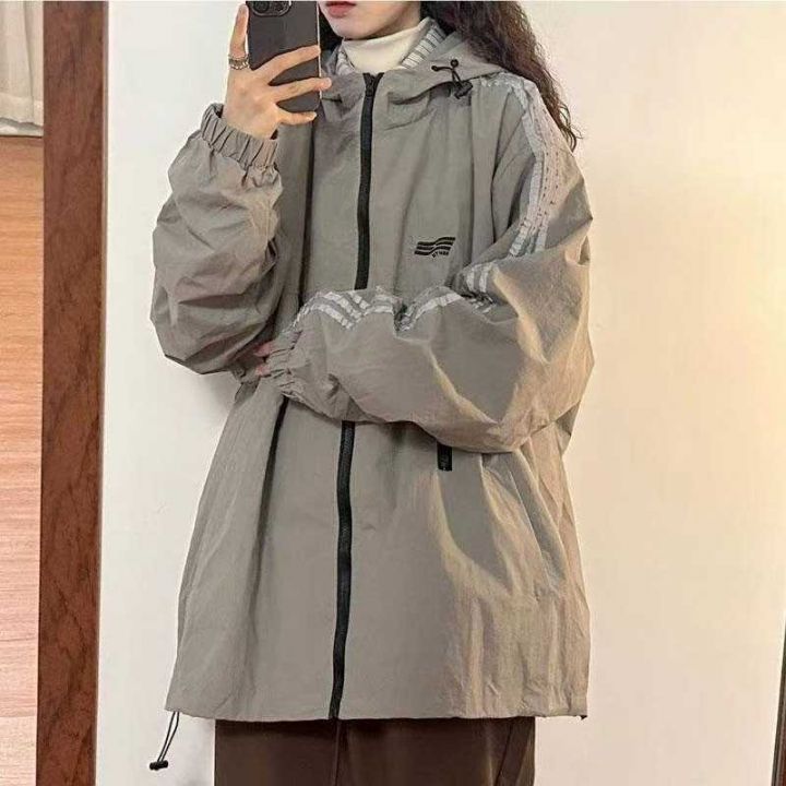 潮牌宽松男女同款冲锋衣双层连帽带反光条夹克外套.单...