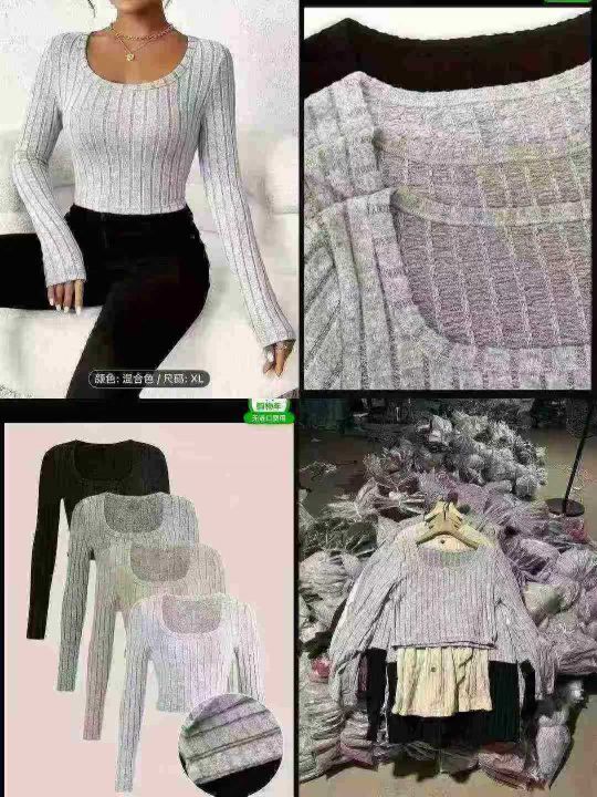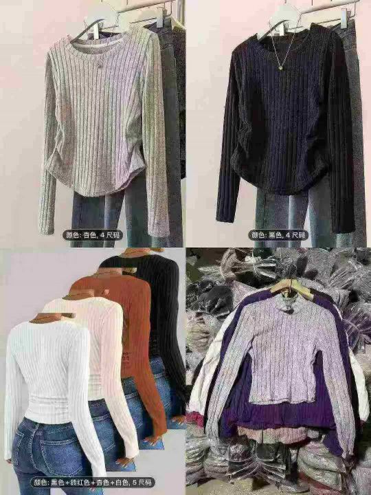 女士罗纹针织外贸女装 百搭款式 视频系列长袖 衫,数量2100件,尺码s-2xl码,独立拉链袋包装,小整款微杂几件,统一面料,全清6.9,分货➕1