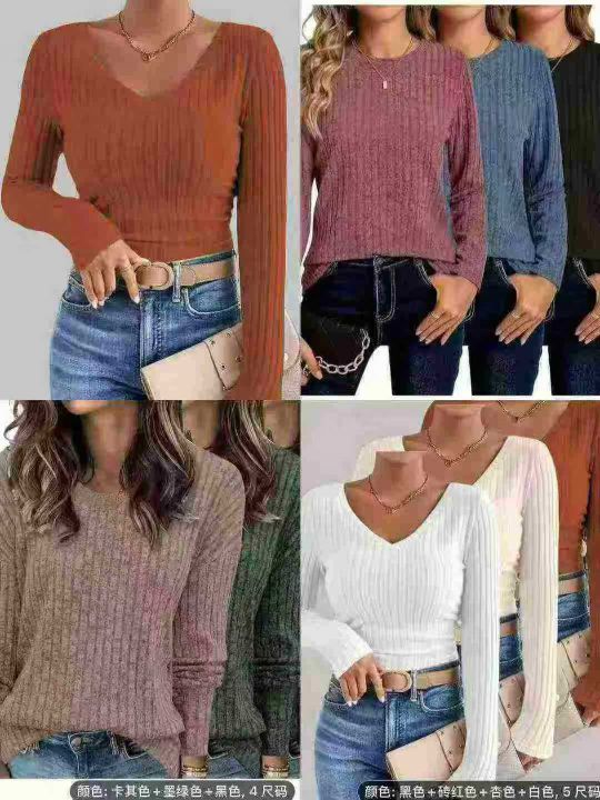 女士罗纹针织外贸女装 百搭款式 视频系列长袖 衫,数...