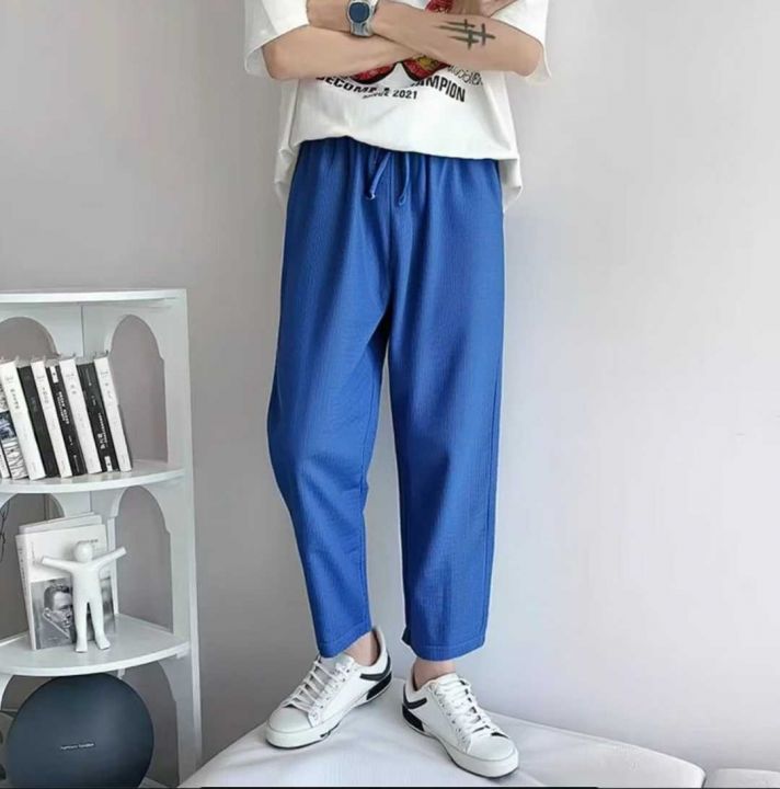 电商仓回收225条蓝色华夫格运动休闲长裤男,码数M-4XL。版型质量很好,有口袋松紧腰,全部独立包装。