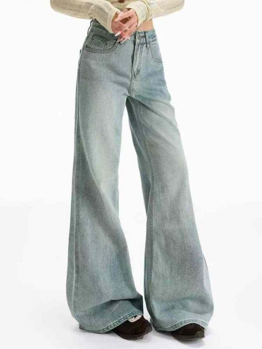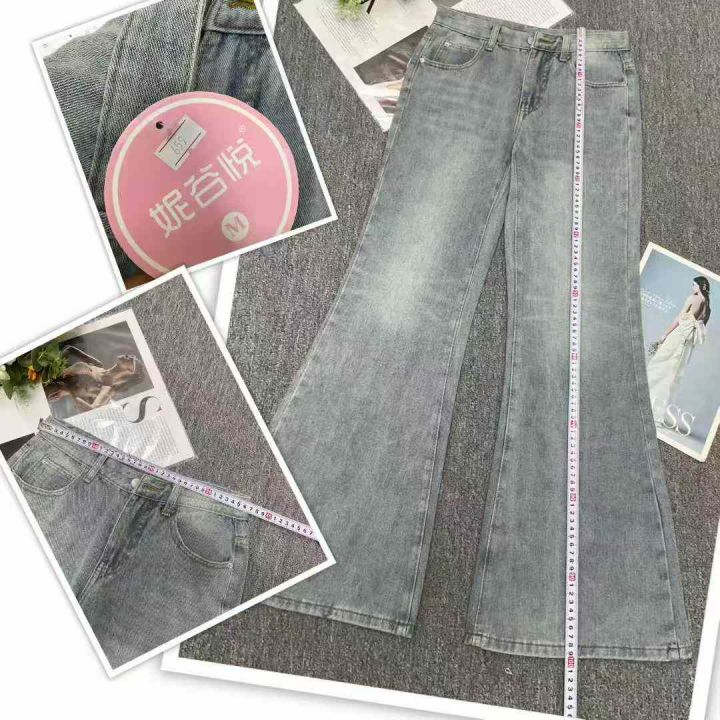秋季新品洗水棉网红爆款牛仔阔腿喇叭裤,独立包装带吊...