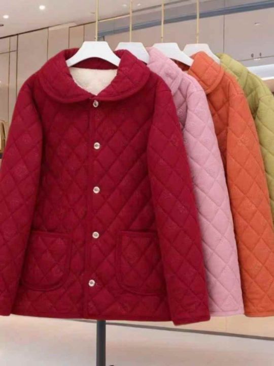 详情:图片款,好几个颜色,珍珠盘扣,尺码3xL~5xL,珊瑚绒内胆 加厚保暖。 货号:8991