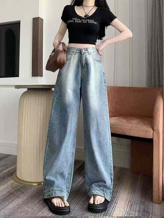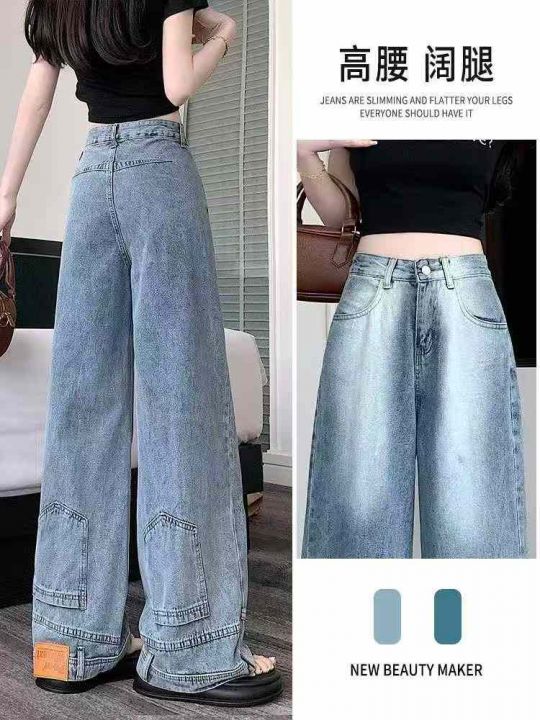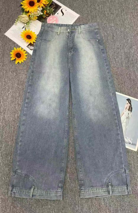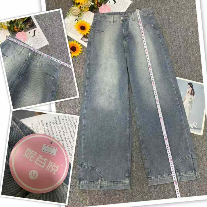 秋季新品洗水棉设计款网红爆款牛仔直筒阔腿裤,码数S-...