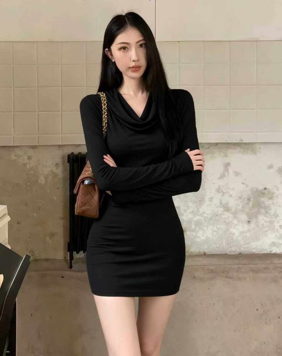 秋冬新款女装百搭性感纯欲风弹力修身显瘦荡领德绒连衣裙,独立包装,码数1--4码,325件,全清5.9元超低价秒杀!分货加一!