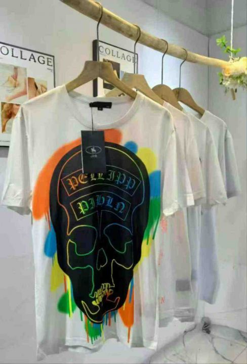 数量164件左右 码数M一5xL ,全部原包装原吊牌,纯棉丝光棉棉面料,高品质,骷颅头个性印花,可入实体店
