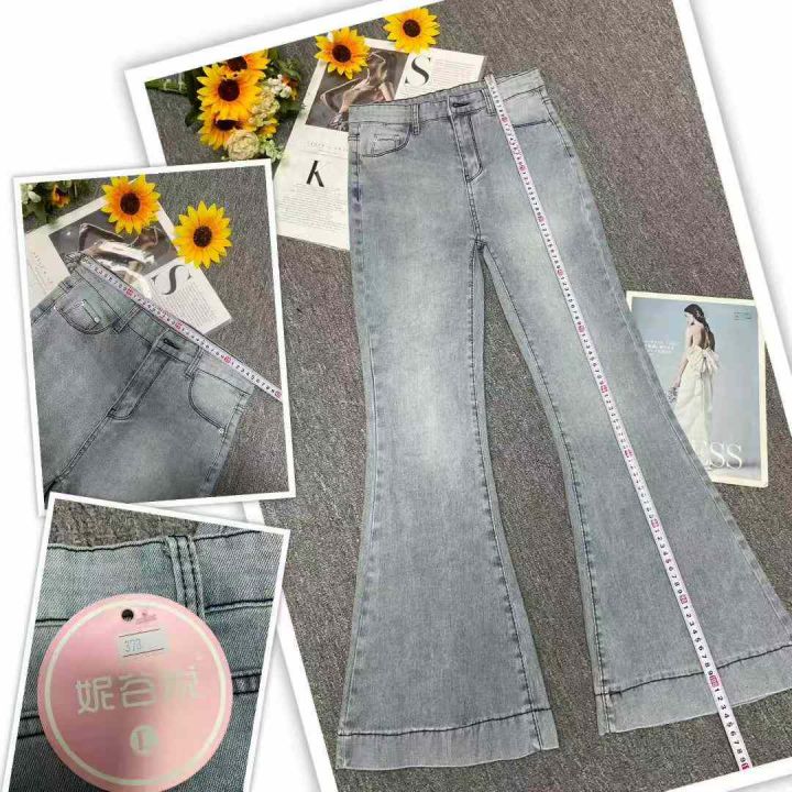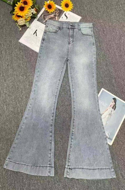 秋季新品弹力洗水棉辣妹风复古水蓝色修身显瘦百搭喇叭牛仔长裤,独立包装带吊牌,码数S--2XL码,170件,全清13.8元超低价秒杀!