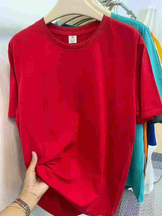 ☕️重磅210克纯棉纯色光版短袖t恤夏季宽松大码圆领美...