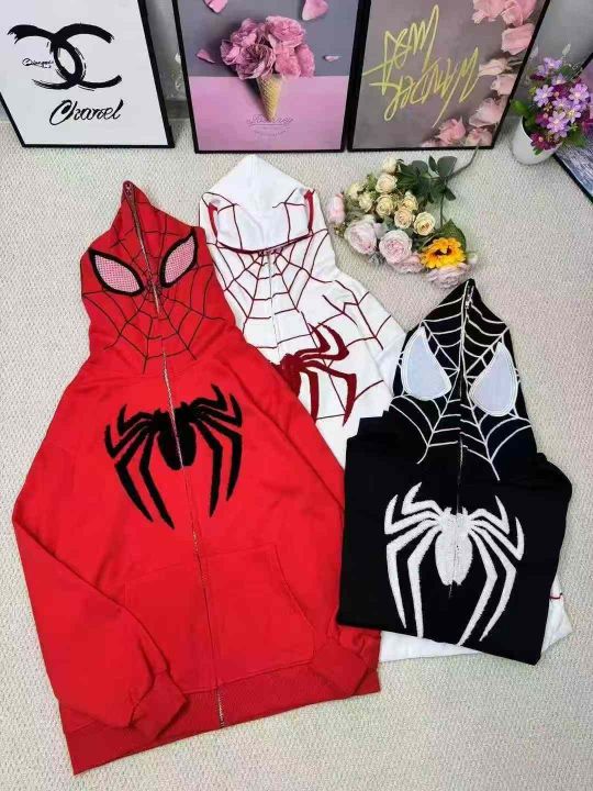 原创美式蜘蛛刺绣拉链开衫男女情侣款卫衣外套.1-4码...