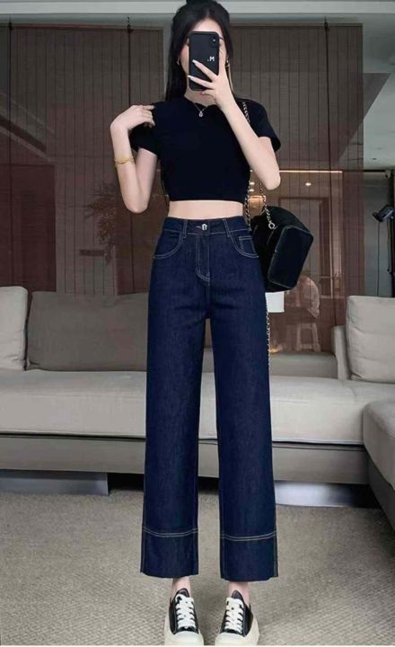 早秋季新品弹力洗水棉直筒窄版牛仔裤,独立包装带腰卡...
