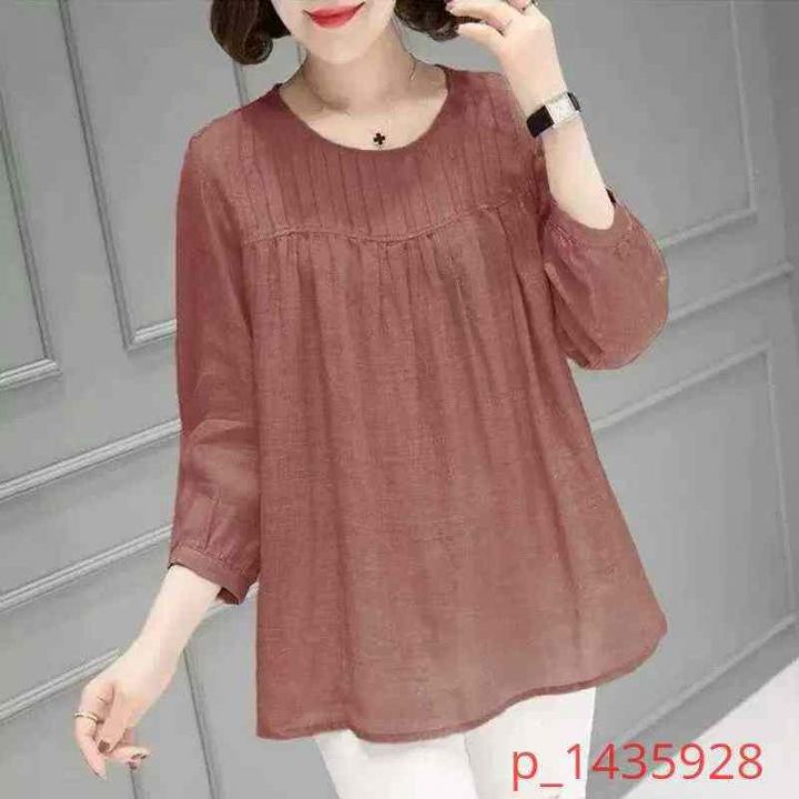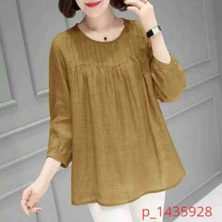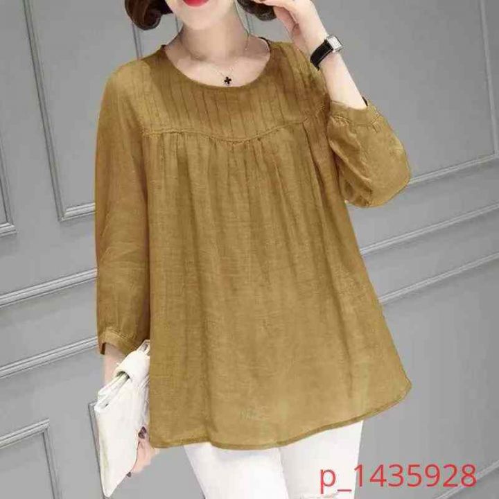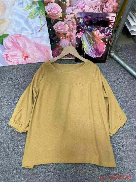 春夏文艺棉麻t恤女式九分袖宽松娃娃衫上衣中年套头亚麻衬衫大码,整款4色,黄色为主,其他色只有个别几件,M-2xL码,独立包装,货品干净,最后270件,4.8清,分货加1 _@_@
