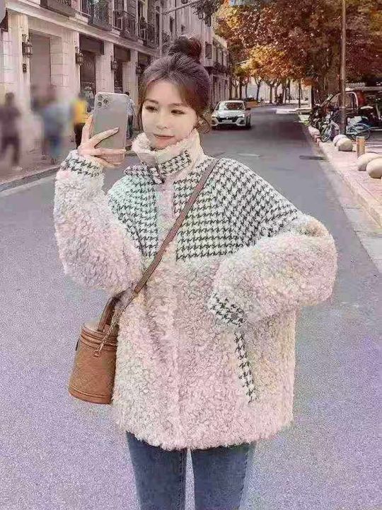 ☕️小香风外套格子拼接羊羔毛外套女冬季短款新款颗粒绒加厚棉服45件全清38.8元,码数M到3XL,图片小整款,独立包装,这个价格炒香 速度秒~