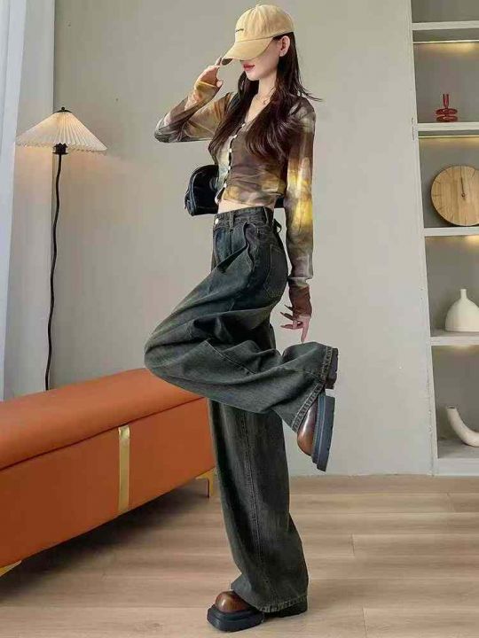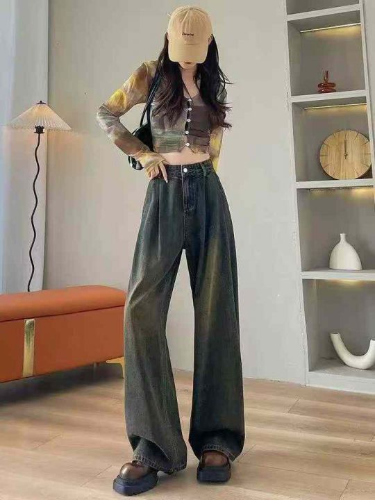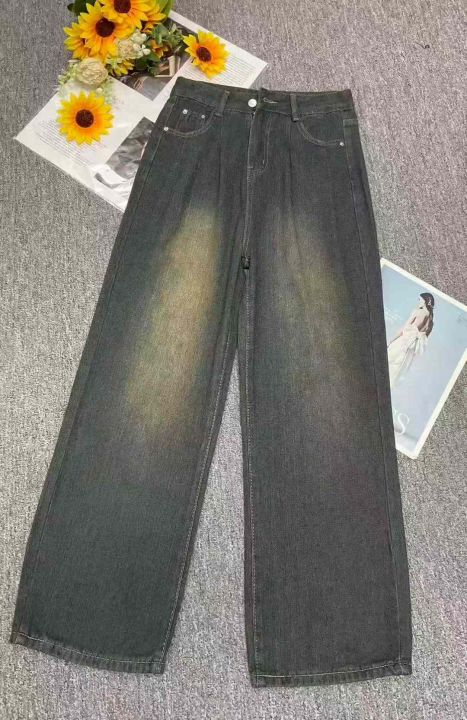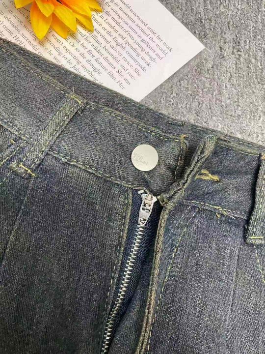 秋季新品洗水棉复古蓝阔腿牛仔裤,独立包装带吊牌,码...