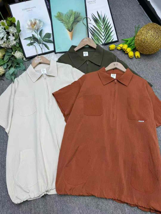 捡漏100件日系复古拉链潮牌翻领短袖t恤潮流宽松百搭工装衬衣,独立包装,码数1-3码(XL-3XL),货号925/81
