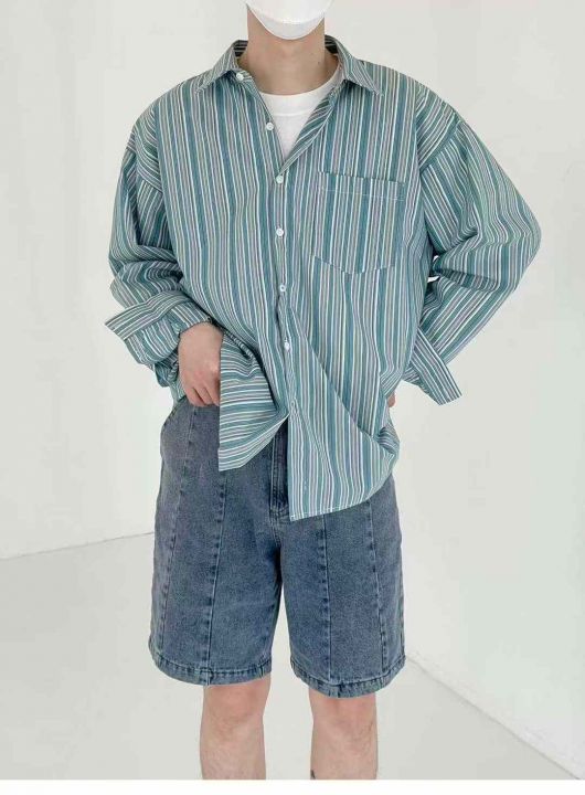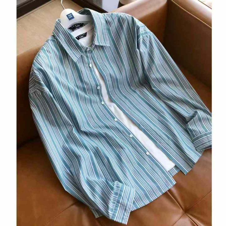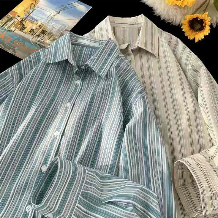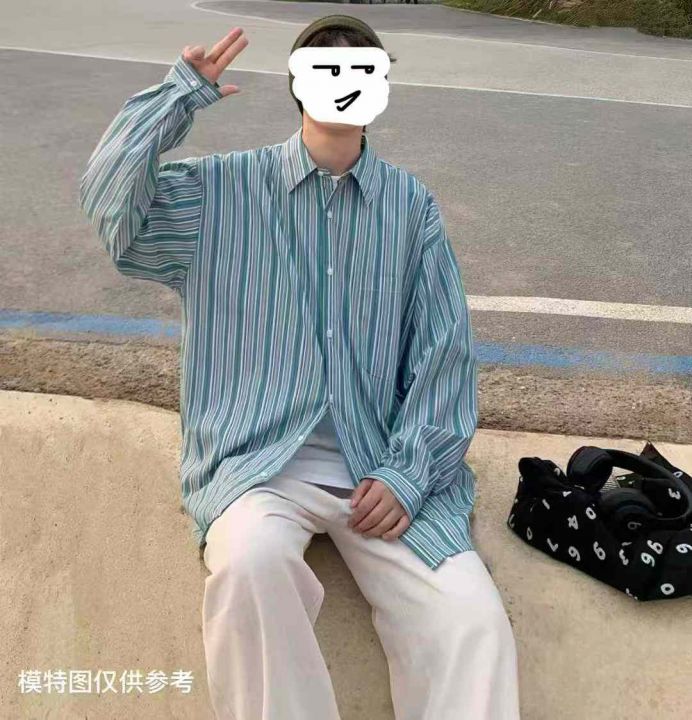 捡漏140件条纹衬衣男女情侣长袖韩版百搭宽松学生痞帅个性衬衫,独立包装,大货图一为主,码数1-5码,货号925#82