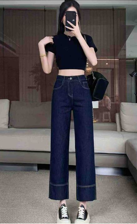 早秋季新品弹力洗水棉直筒窄版牛仔裤,独立包装带腰卡...