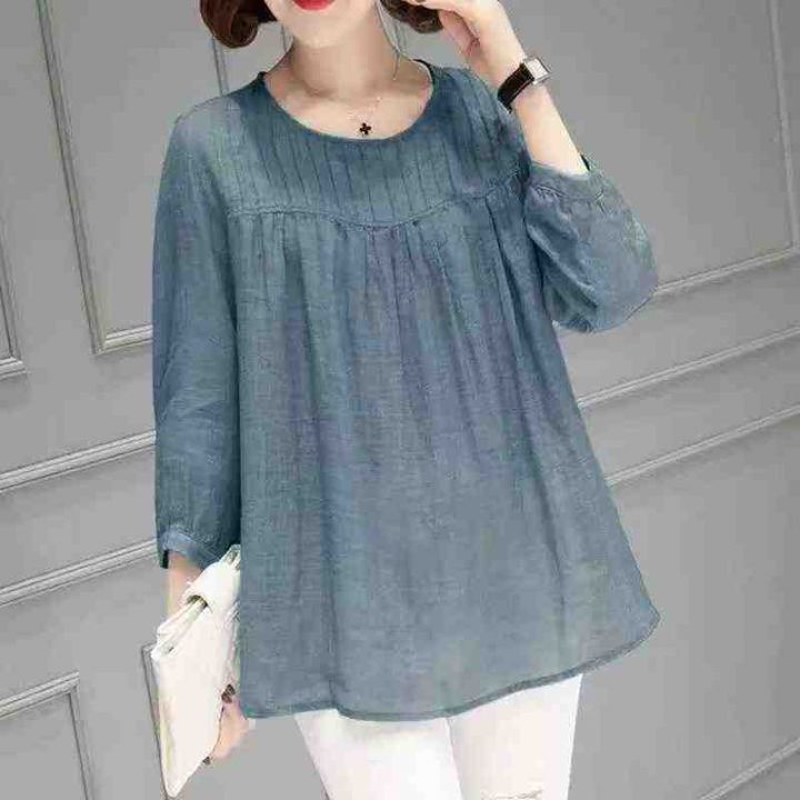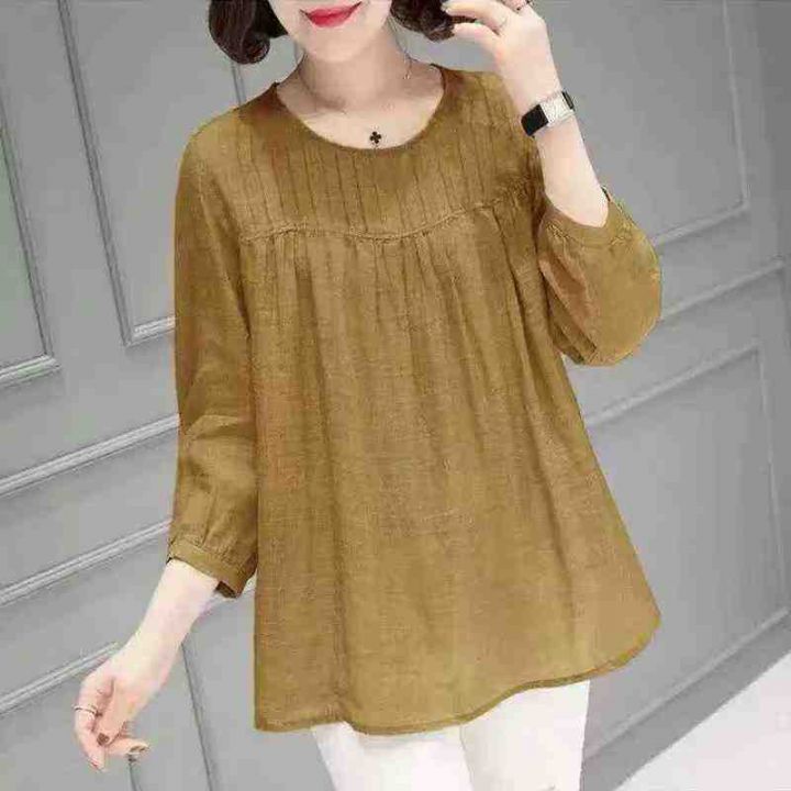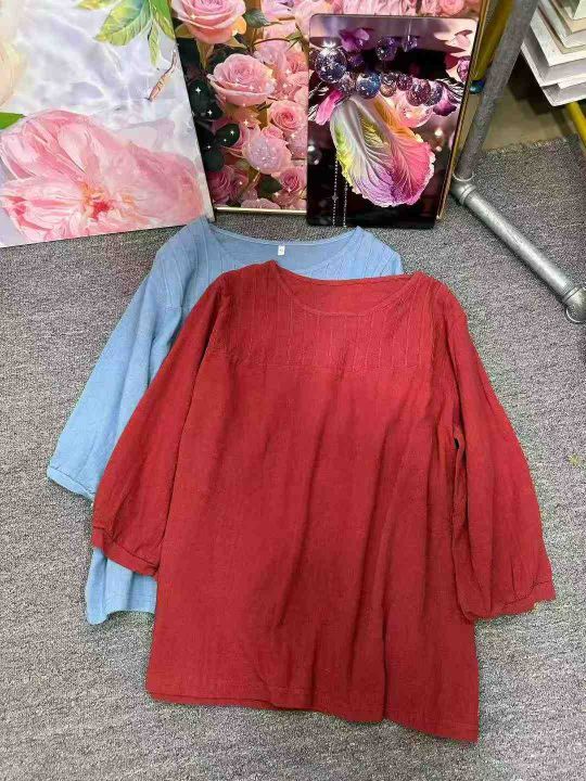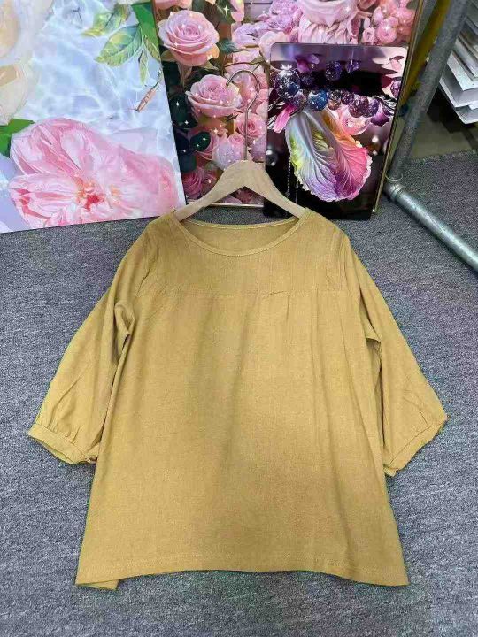 春夏文艺棉麻t恤女式九分袖宽松娃娃衫上衣中年套头亚麻衬衫大码,整款4色,黄色为主,其他色只有个别几件,M-2xL码,独立包装,货品干净,最后270件,4.8清,分货加1