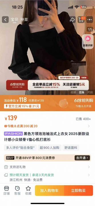 150件左右2025新款韩版方领泡泡袖法式靓妹T恤长袖上衣...