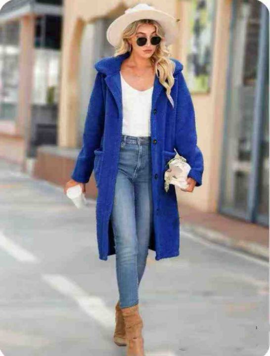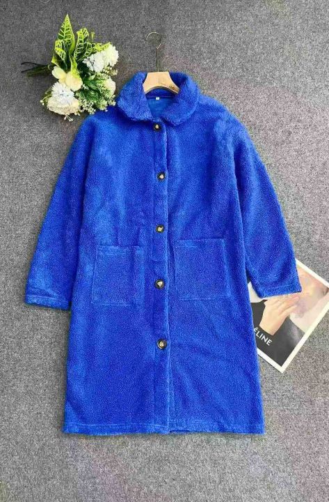 161件克莱茵蓝中长款毛绒外套,单款单色,面料柔软舒...