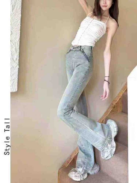 秋季新品美式复古做旧辣妹微喇牛仔裤,独立包装带吊牌...