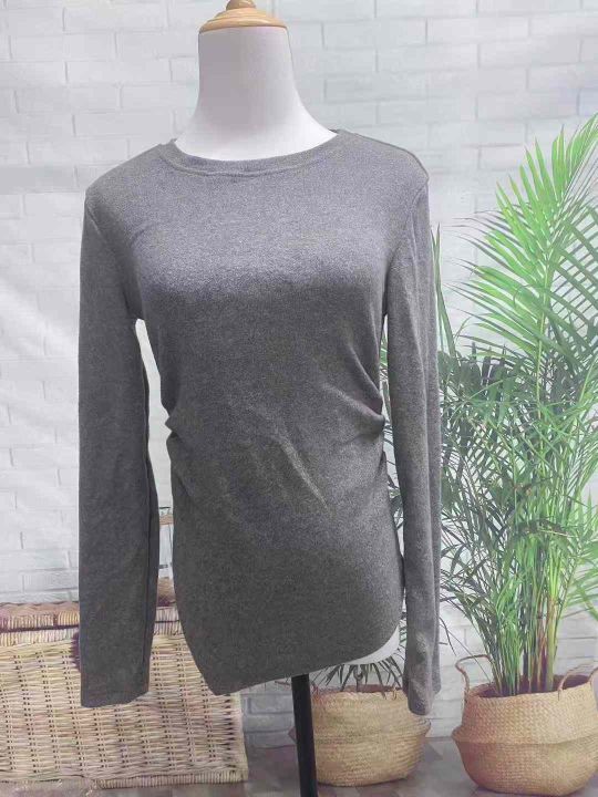 4.8元打包,设计不规则洋气圆领长袖T恤新款显瘦开叉修身打底上衣,84件左右,S-XL