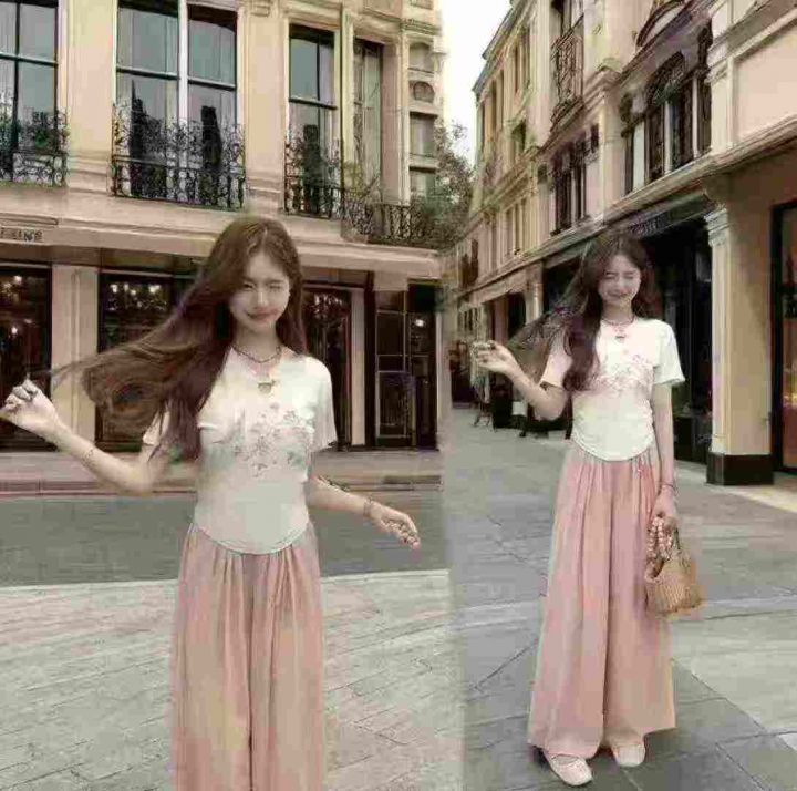 6.8清电商仓回收100条奶芙芙粉色国风山本裤阔腿裤女,...
