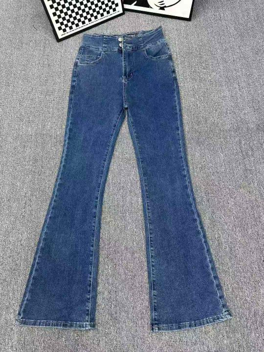 高弹力网红高腰喇叭牛仔裤女,单款四色,独立包装带吊...