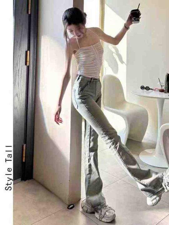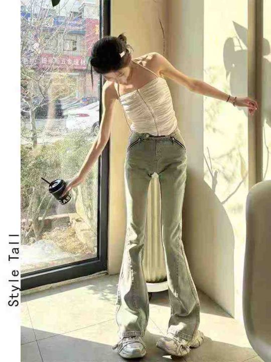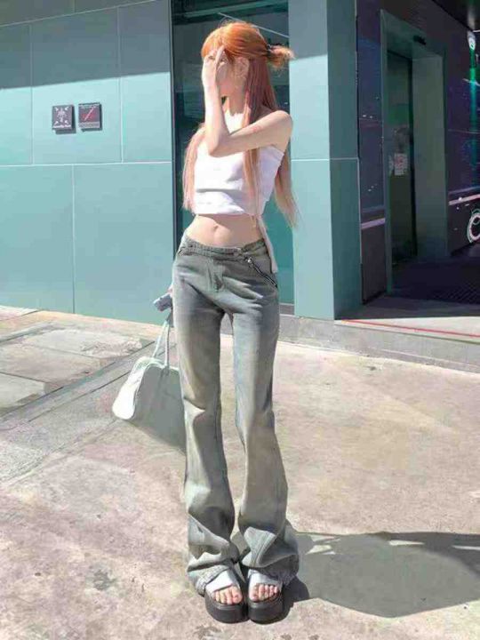 秋季新品美式复古做旧辣妹微喇牛仔裤,独立包装带吊牌...