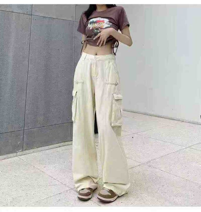 高品质女装多口袋工装牛仔直筒阔腿裤,独立包装带吊牌...