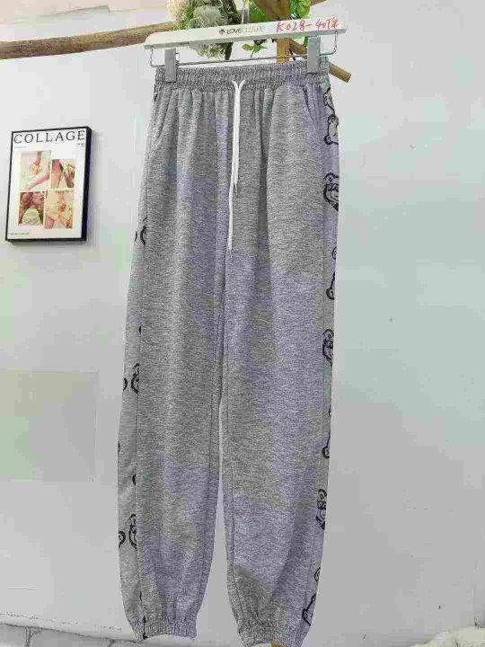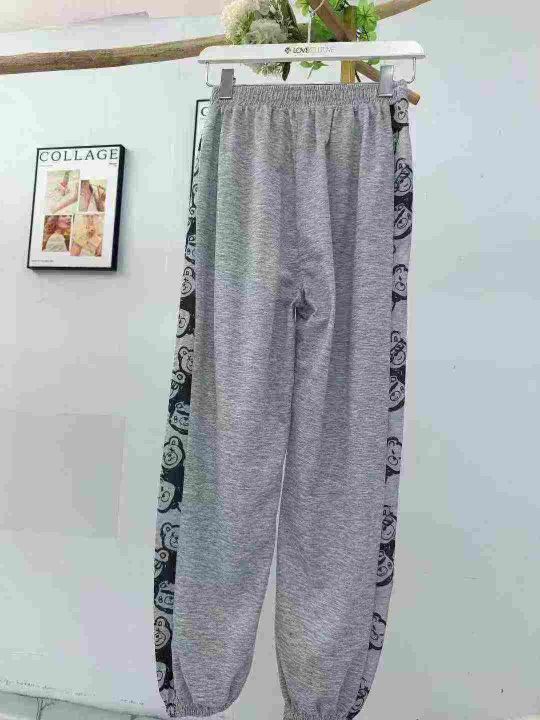 440件男女同款创意小熊拼接运动裤时尚潮流宽松抽绳束脚休闲卫裤!