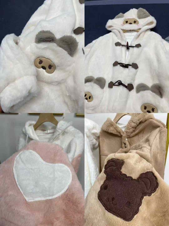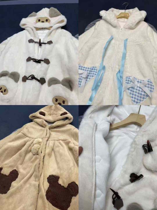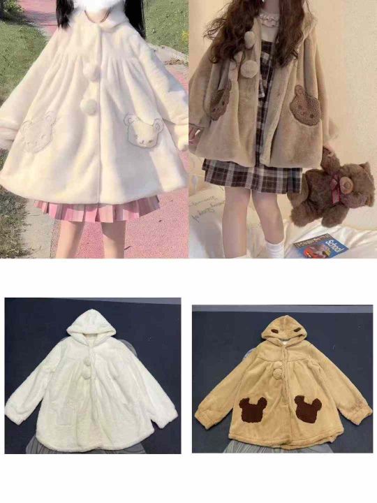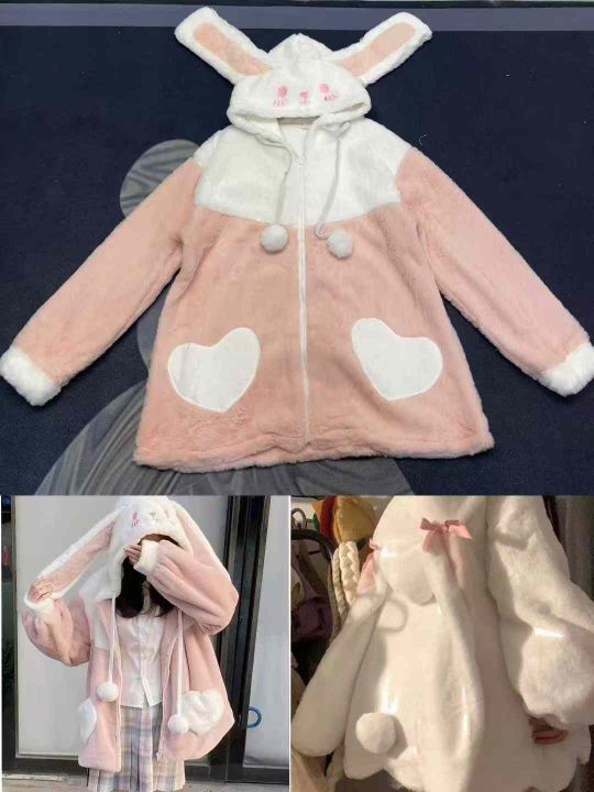 天猫在售款663件高品质冬季日系萝莉慵懒风可爱甜妹加绒加厚款兔毛绒外套,图片四款图片色,M-L,独立包装带吊牌
