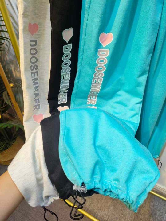 209件春夏季时尚宽松大版印花运动休闲束脚裤(裤脚两穿)单款三色,码数1-4(S-XL)独立包装。